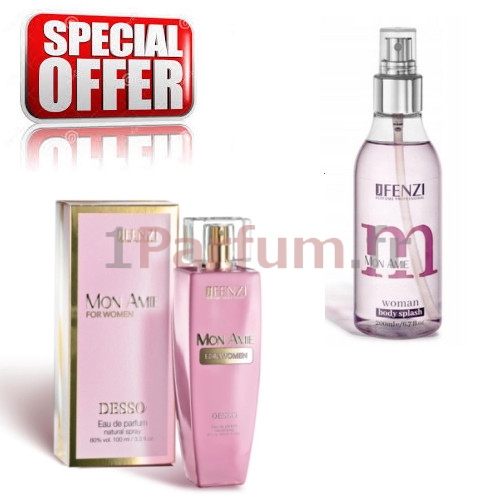 JFenzi Desso Mon Amie - Ensemble promotionnel, Eau de Parfum 100 ml, brume parfumée pour femme [body splash] 200 ml